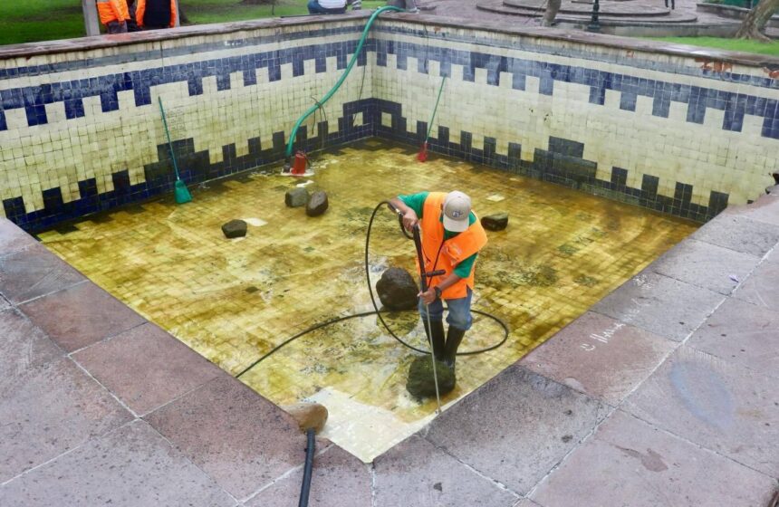 LE DAN LIMPIADA A LA PILETA DE LOS PECES DE LA ALAMEDA